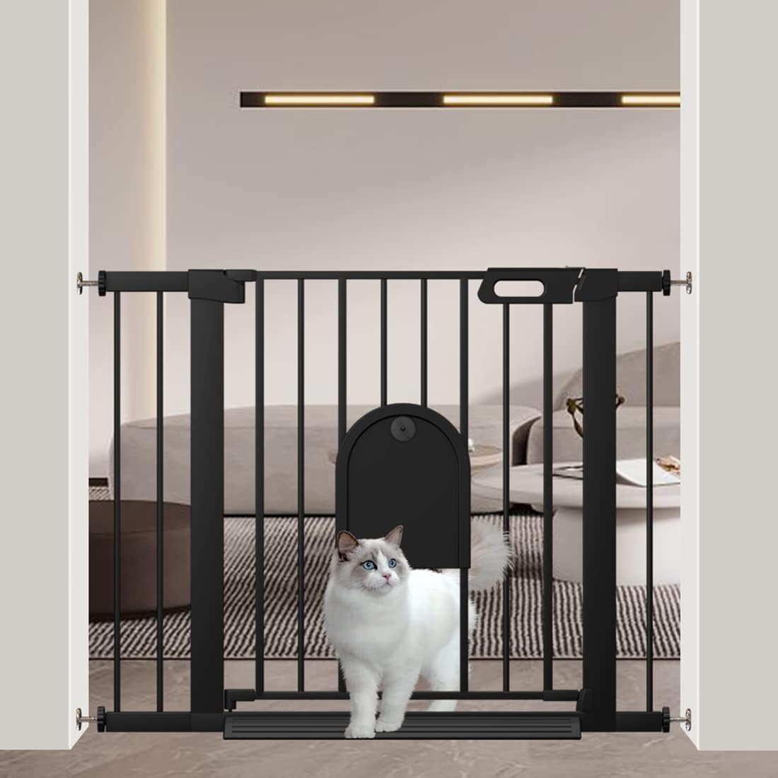 KingSo Extra Tall 30" Wide 29.5” 40.5" Auto Close Baby Gate with Swing Baby Gate With Door Cat the babelio upgraded baby gate with cat door is not just a safety feature; innovative small pet door: It's a thoughtful addition to your home, balancing the needs of your family and pets with ease. Baby Gate With Door Cat.